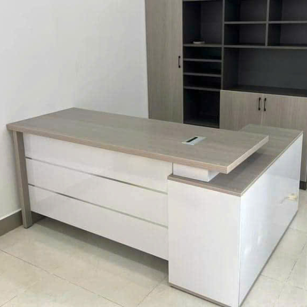 Bàn Giám Đốc Gỗ Công Nghiệp Màu Trắng Xám Hiện Đại