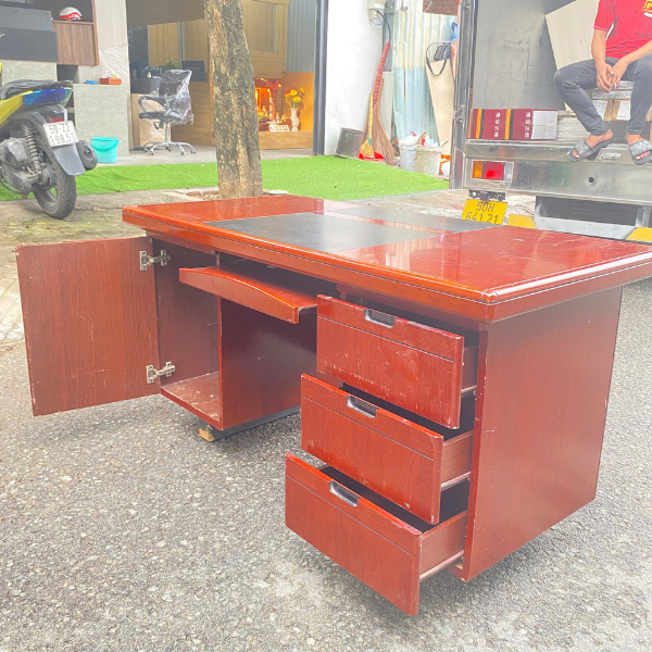 Bàn Giám đốc gỗ MDF nâu 1m4 full hộc cũ đẹp