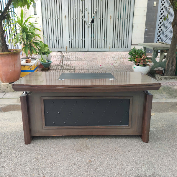 - Mô tả: Bàn giám đốc gỗ với thiết kế mặt bàn rộng, màu nâu trầm kết hợp panel đen nổi bật, tạo sự chuyên nghiệp cho không gian làm việc. Chất liệu gỗ công nghiệp cao cấp, bề mặt phủ bóng chống trầy, dễ vệ sinh. Sản phẩm đã qua sử dụng nhưng còn bền đẹp, chắc chắn, là lựa chọn hợp lý cho doanh nghiệp hoặc văn phòng cần đầu tư bàn làm việc giám đốc với chi phí tiết kiệm.