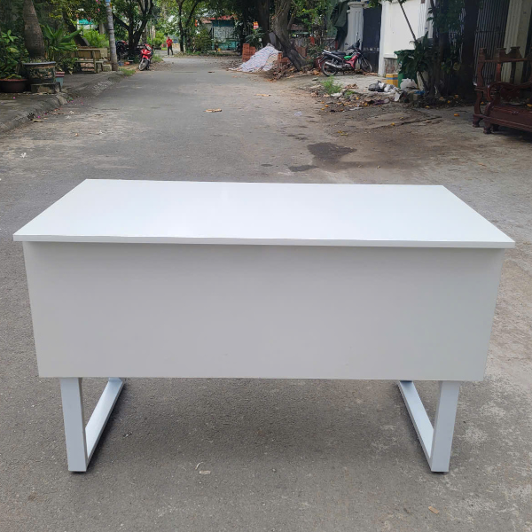- Chất liệu: Mặt bàn gỗ MDF lõi xanh chống ẩm, phủ Melamine. Khung chân sắt sơn tĩnh điện bền màu. Màu sắc: Trắng