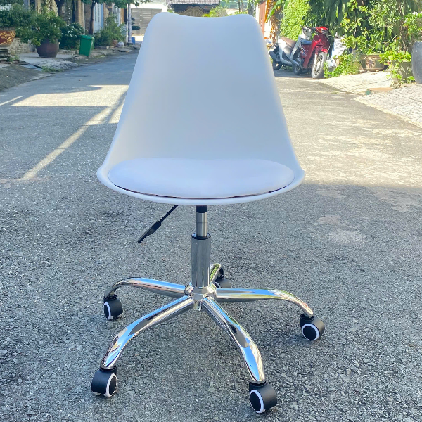 Ghế xoay trắng chân inox hiện đại gọn nhẹ