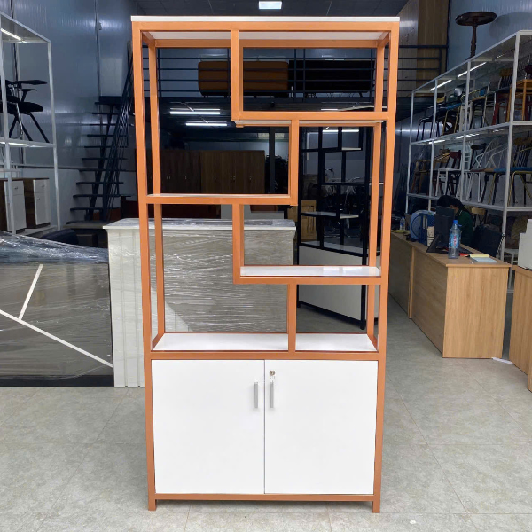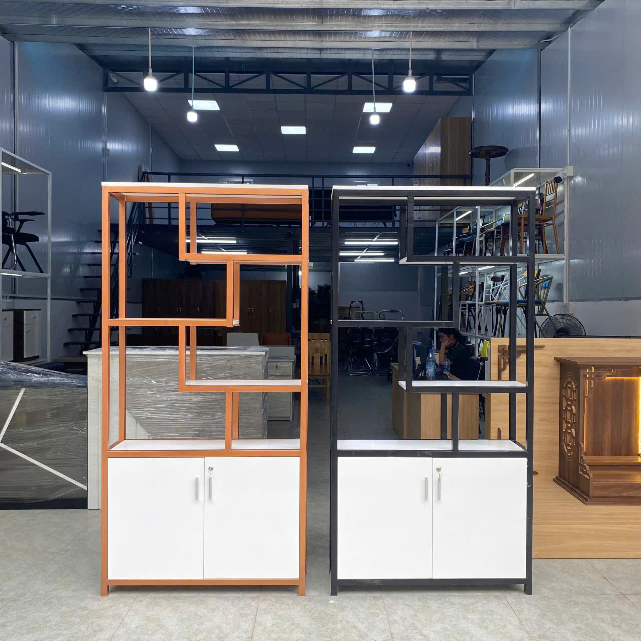 Kệ trưng bày khung sắt 1mx2m phối gỗ MDF hiện đại